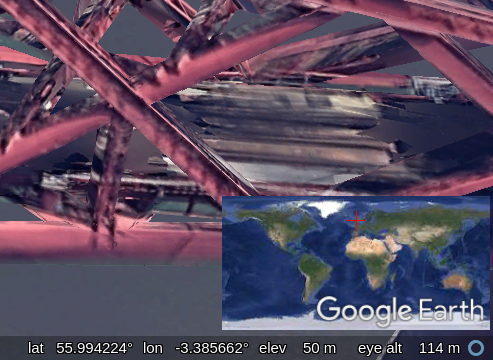 As the toilet is located close to the southern portal, finding it on Google Maps or Google Earth is straightforward, although switching to the 3D view is necessary: