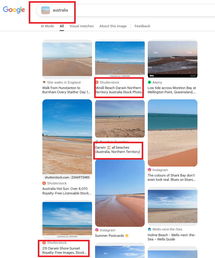 The reverse image search lottery, coupled with the keyword Australia, returns some results for beaches near Darwin, Northern Territory, among others: