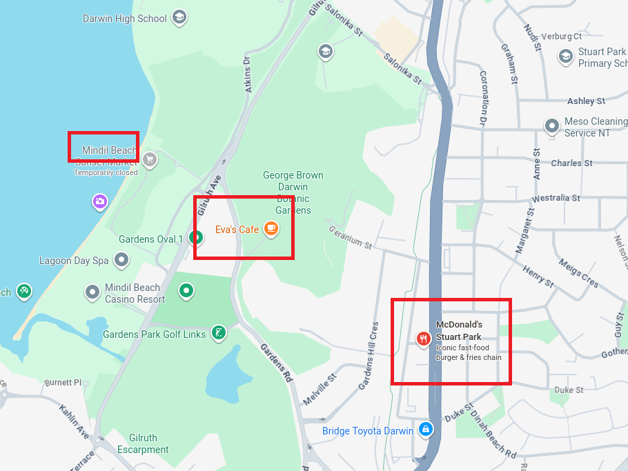 There aren’t that many McDonald’s spots in or around the city (or in the whole of Northern Territory for that matter), so the beach can be located quickly: